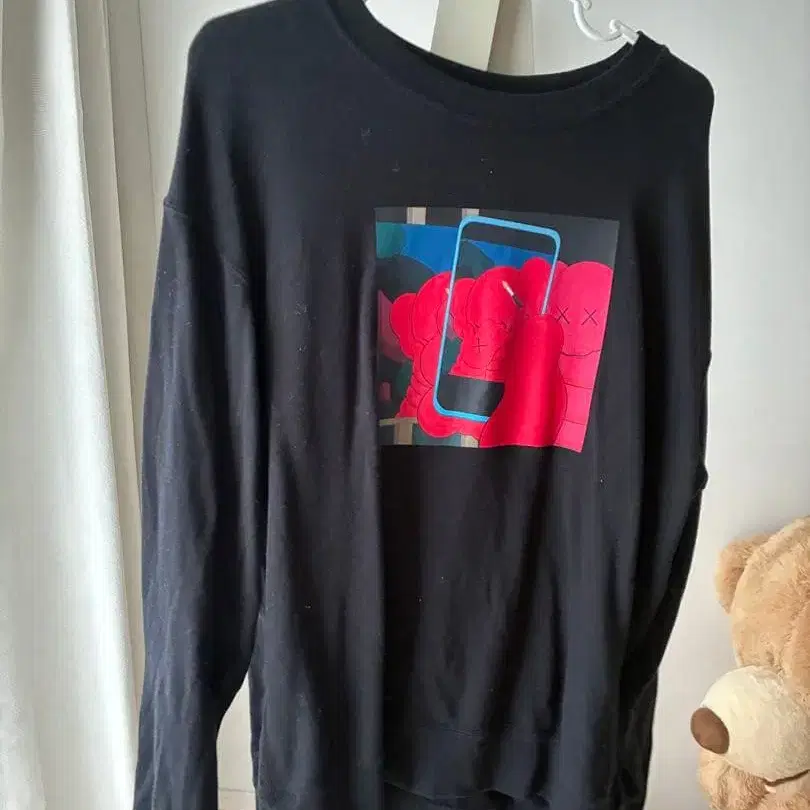 그래픽 프린트 블랙 긴팔 티셔츠