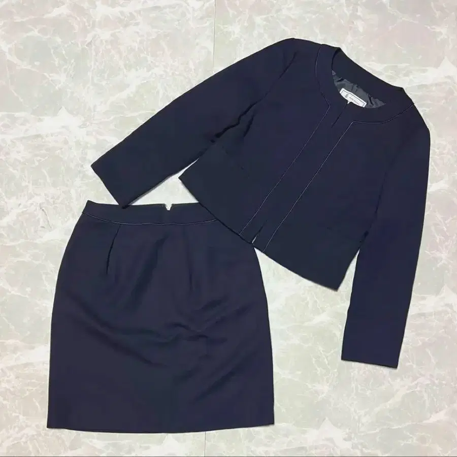 ROPE PICNIC(로페피크닉)의 노카라 자켓과 스커트 셋업입니다.