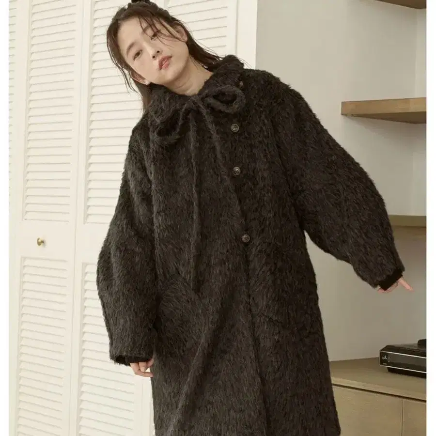 moi tytto 샤기 미디 기장 코트