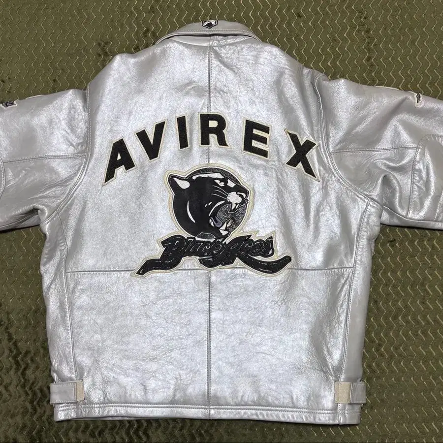 자동 번역되었어요. 원문보기실버 AVIREX 가죽 자켓, 블랙팬서 자수 포함.