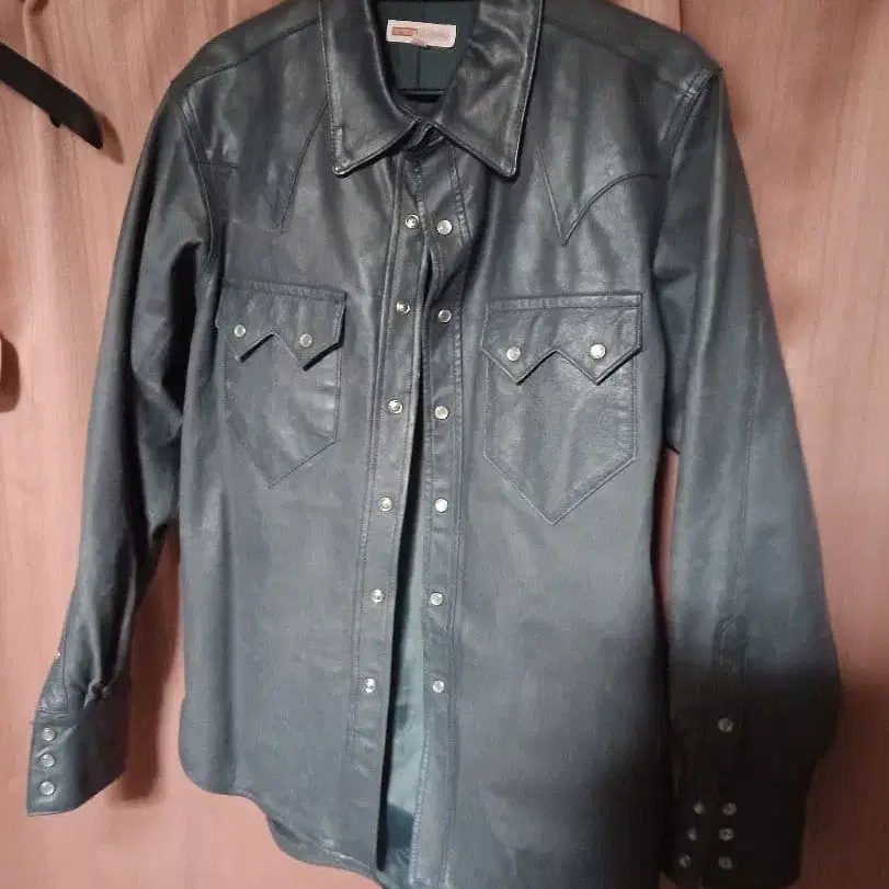 NEYRIES 네이리즈 천연 가죽 그레이 가죽 웨스턴 셔츠 스냅 버튼