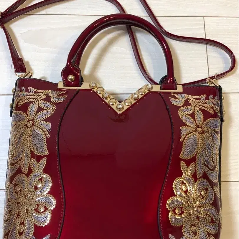 빨간색 꽃무늬 자수 핸드백
