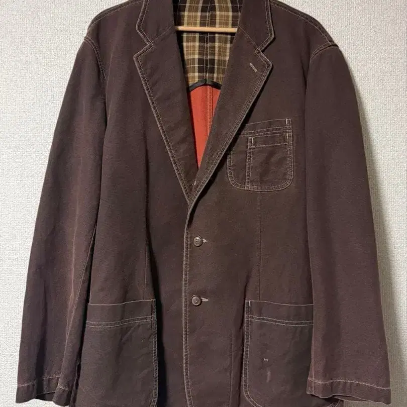 브라운 테일러드 자켓 체크 안감