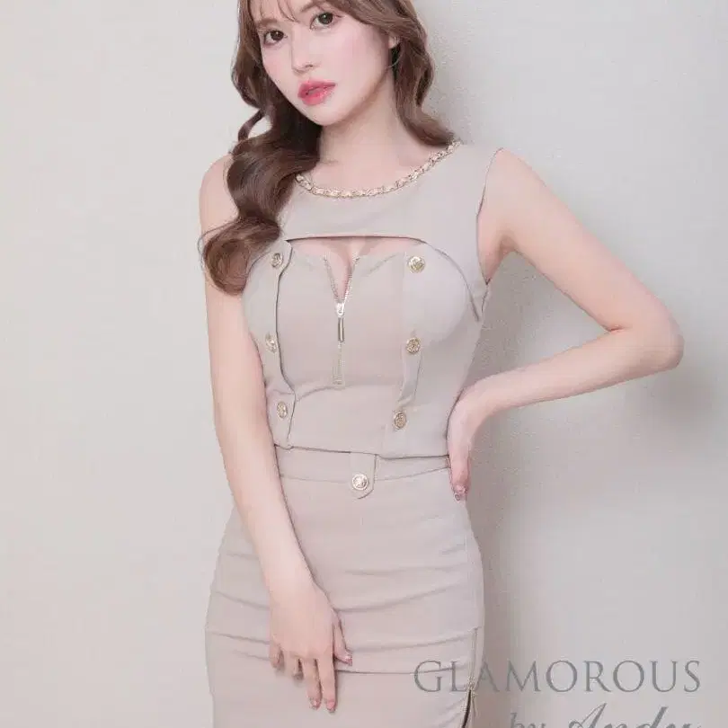 GLAMOROUS by Andy 베이지 타이트 미니 드레스