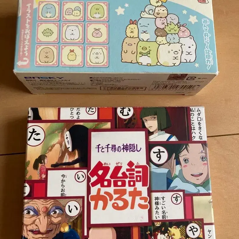 기억력 카드 게임 [오보에테 9 (나인)]의 스미코구라시 버전. [9장의 캐릭터를 기억하고, 지정된 장소의 캐릭터 이름을 맞추는] 심플한 규칙입니다. 맞춘 장소에는 새로운 캐릭터가 등장하므로 기억을 덮어쓰는 것이 필요합니다. 처음 플레이하는 사람들을 위해 [간단 규칙]도 준비되어 있습니다. 스미코구라시 캐릭터들과 함께 즐겁게 두뇌 트레이닝을 해보지 않으시겠어요? 세트 내용 오보에테 카드 x 73장 9 (나인) 카드 x 27장 플레이 시트 x 1장 놀이 설명서 x 1장 제조사 가격 1,980엔 (세금 포함) 센과 치히로의 행방불명의 명장면을 많이 사용한 카루타입니다 ♪ 즐기면서 센과 치히로의 행방불명의 대사나 장면을 즐기면서 '카루타 놀이'를 할 수 있습니다 ♪ 모두가 아는 그 대사, 숨겨진 명대사 등 ☆ 45점 ☆을 담았습니다 ♪ 세트 내용 그림 카드 45장, 읽는 카드 45장, 예비 카드 2장, 카드 목록 제조사 가격 1,650엔 (세금 포함) 어린이와 놀기 위해 구매했습니다. 상자에 데미지가 있지만, 카드는 깨끗합니다. 규칙도 간단해서 바로 즐길 수 있습니다.