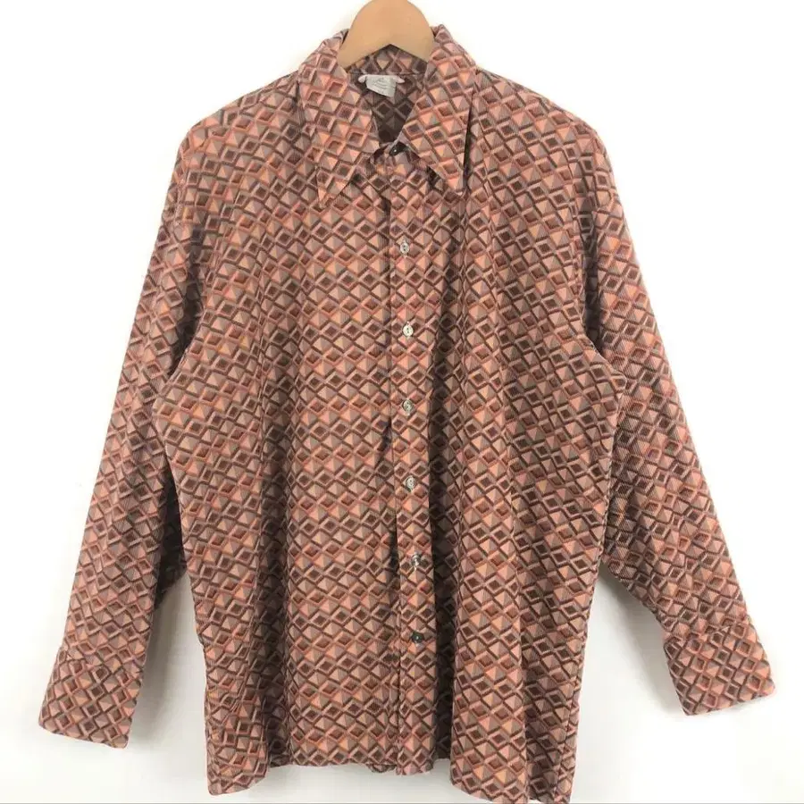 자동 번역되었어요. 원문보기Leco 셔츠 폴리에스테르 셔츠 기하학 패턴 70년대 빈티지 긴팔 브라운 계열 남성용 XL [ 중고 ] n043201