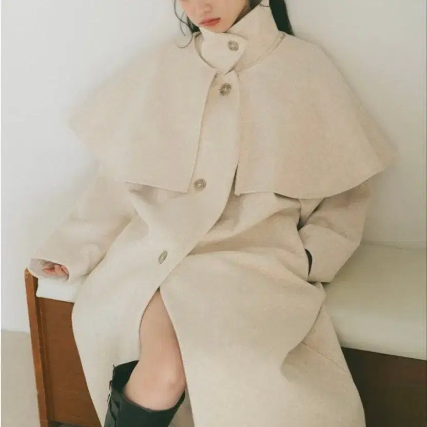 VANNIE U 웨이브 롱 코트/케이프 탈부착 가능