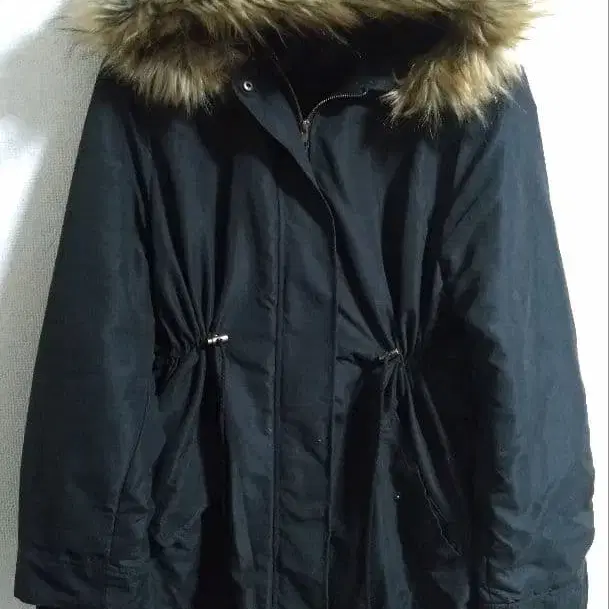 빅 사이즈 볼륨 퍼 허리 조임 블랙 다운 코트 LL