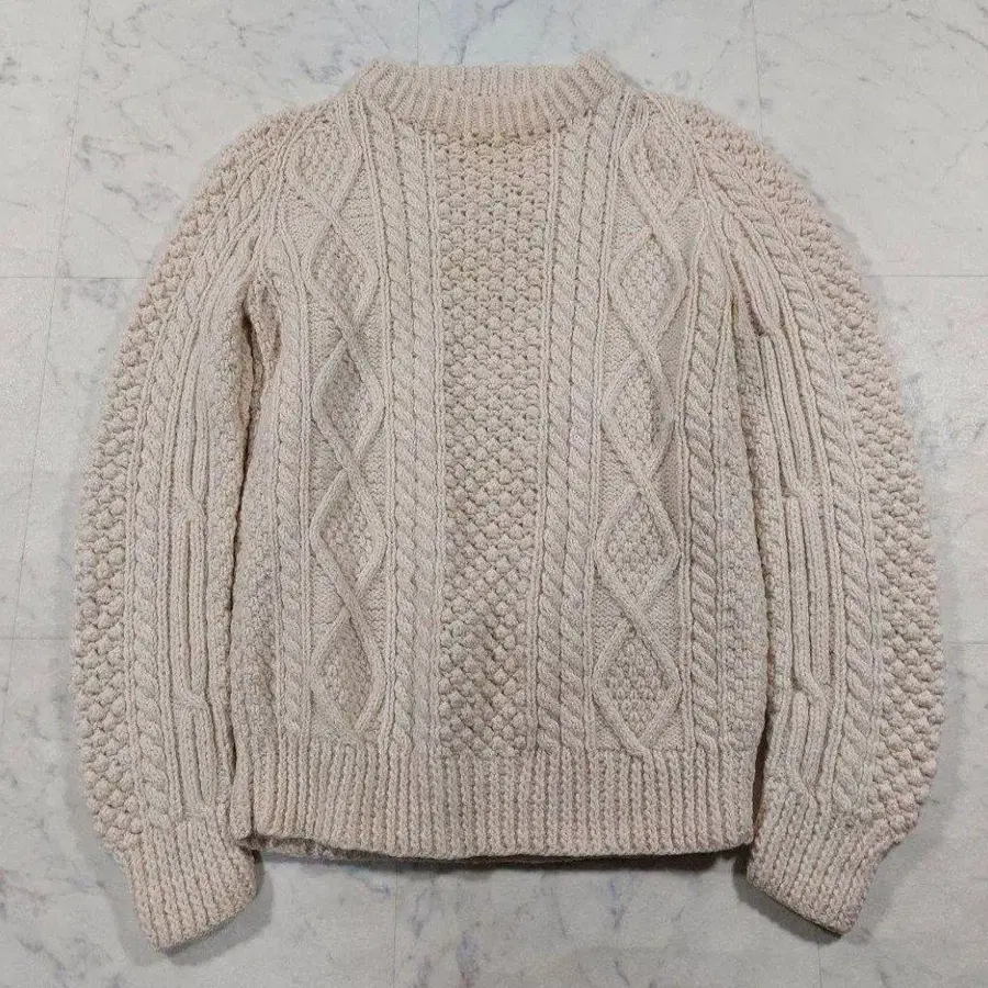 빈티지 아란 니트 M 상당 케이블 니트 핸드 니트 아이보리 두꺼운 원단