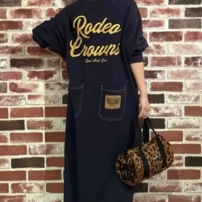 로데오 크라운 래글런 컬러 스티치 원피스 네이비 롱 원피스