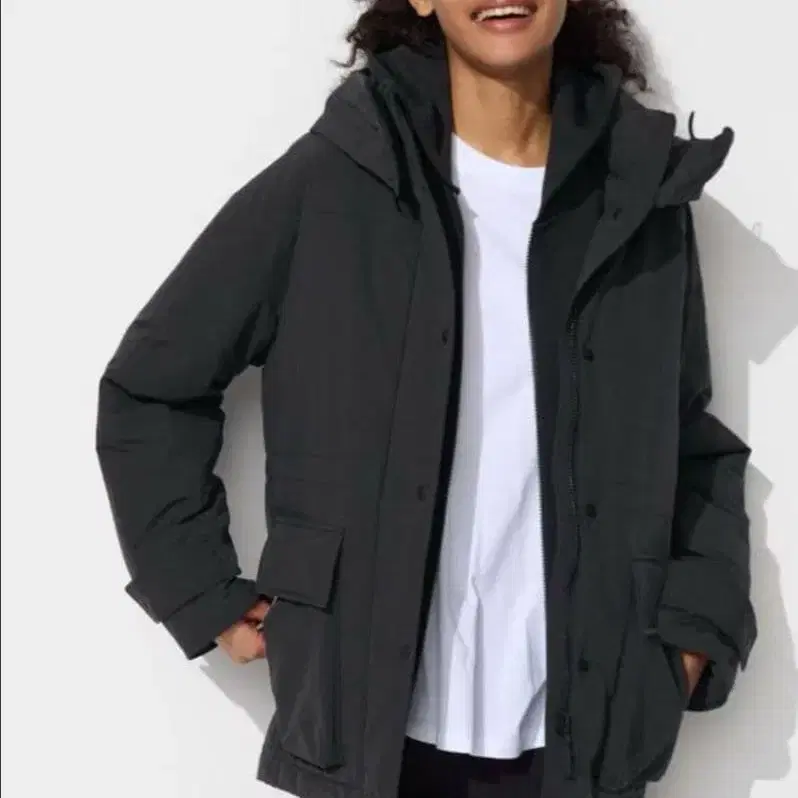 유니클로 하이브리드 다운 코트 블랙 S