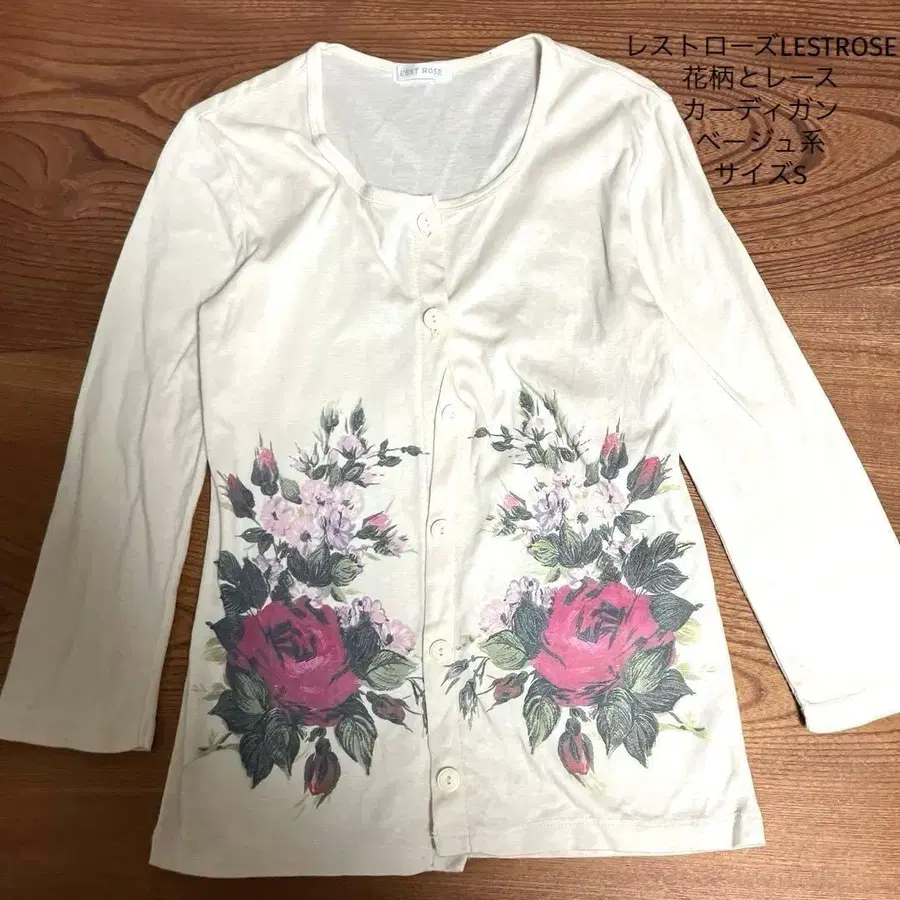 자동 번역되었어요. 원문보기레스트로즈, 크림색 꽃무늬 프린트 긴팔 가디건, 프론트 오픈 버튼식.