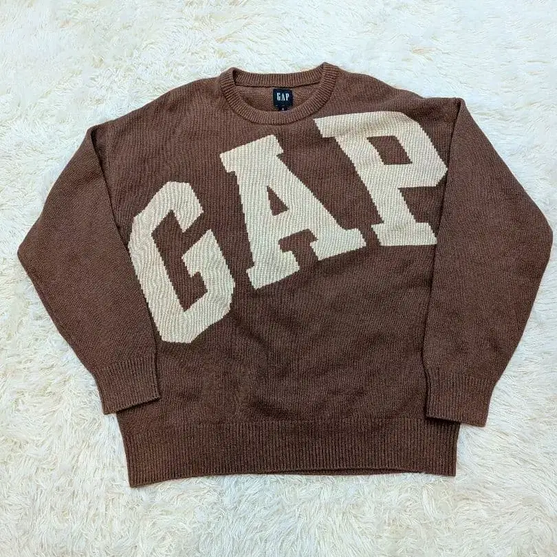 P>GAP의 큰 로고 디자인이 눈길을 끄는 캐주얼 니트 스웨터입니다.