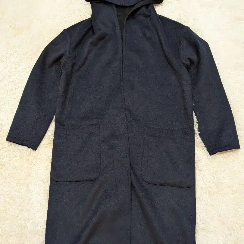 후드 부착 네이비 롱 코트, 폴리에스테르와 레이온, 울 소재이며 M 사이즈입니다.