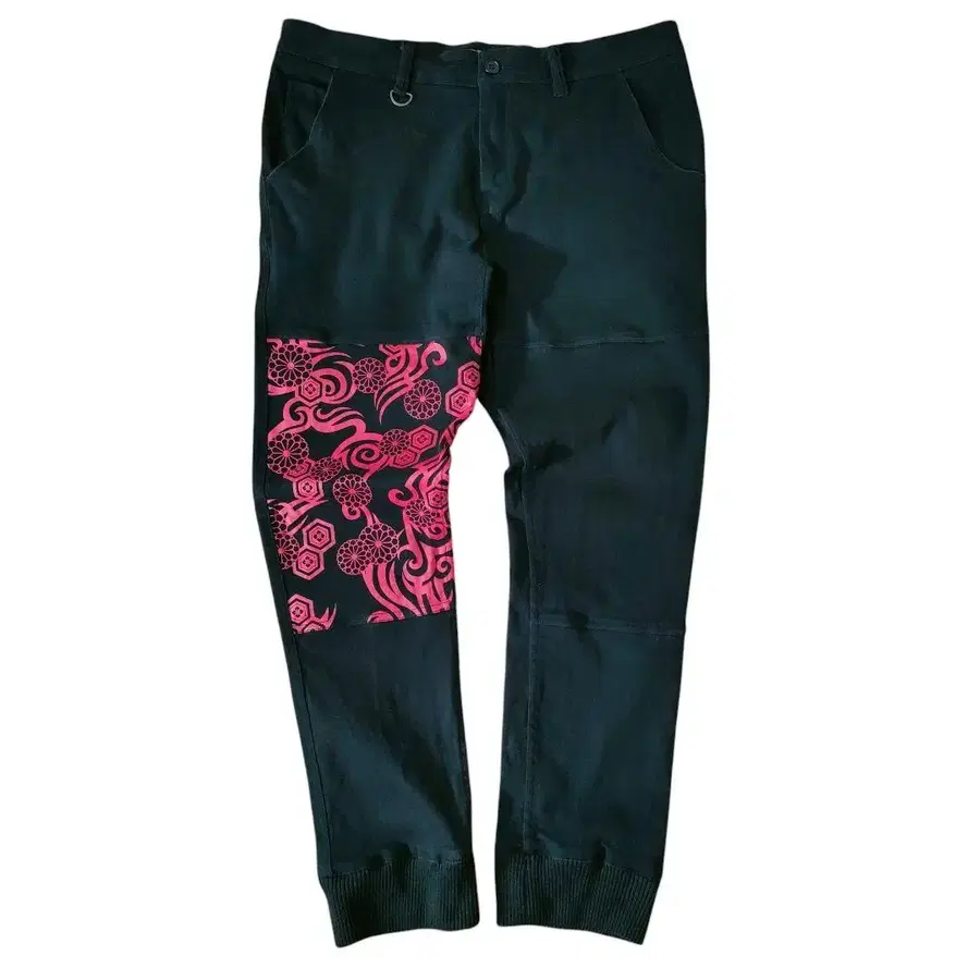 도둑 일기 일본풍 패턴 프린트 스트레치 조거 팬츠 사이즈 36 블랙