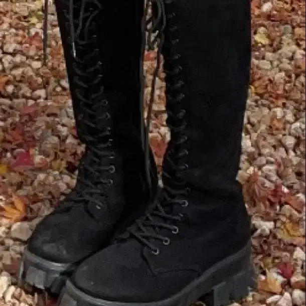 블랙 스웨이드 통굽 롱 부츠