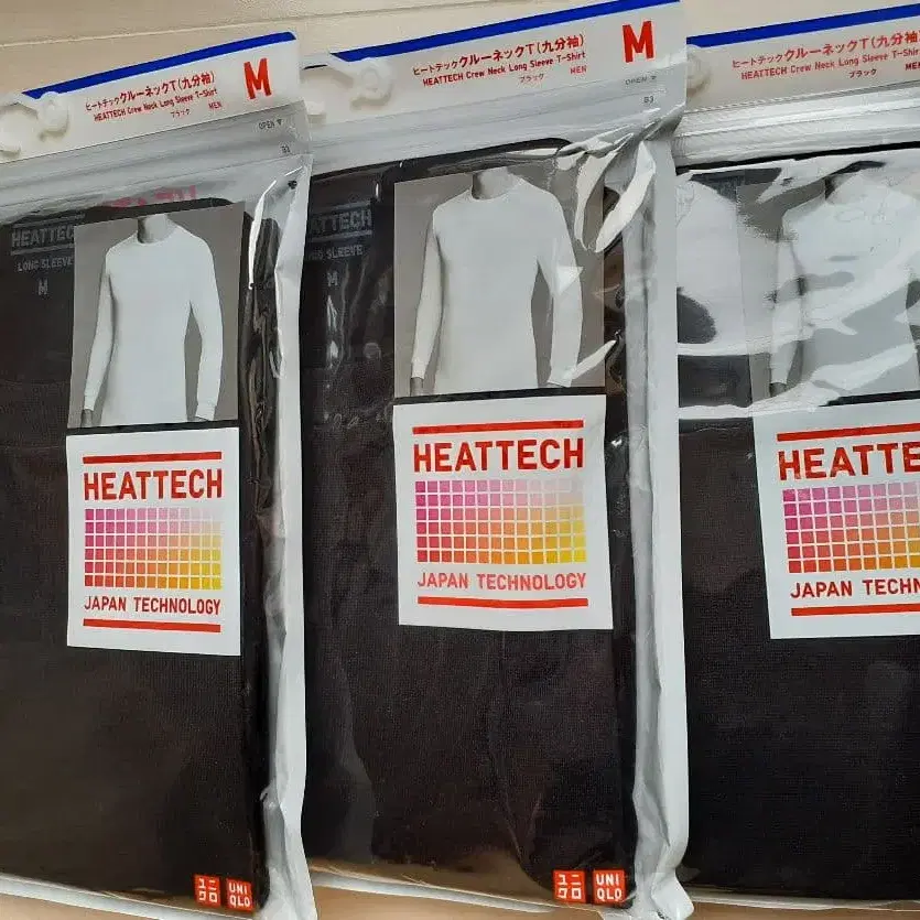 유니클로 히트텍 크루넥T 칠부소매 블랙 M 3장 세트