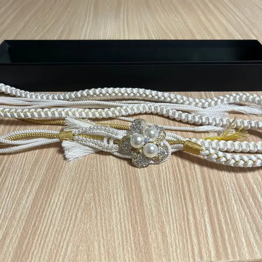 화이트 펄 장식 꽃 모티브 허리띠