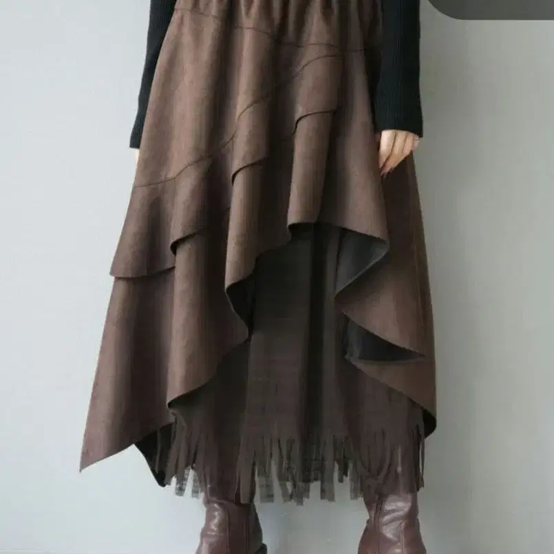 스웨이드 느낌의 소재와 플리츠 원단을 도킹한, 이소재 믹스 비대칭 스커트입니다. 움직임이 있는 밑단 디자인이 아름답게 흔들려 스타일링에 입체감을 더합니다. 허리는 전체 밴딩 사양으로 편안한 착용감을 주면서도, 떨어지는 느낌의 소재가 고급스러운 인상을 줍니다. 심플한 상의와 함께 매치하는 것만으로도 세련된 무드를 연출할 수 있는 메인 아이템입니다. 캐주얼에도 모드에도 폭넓게 활약하는 아이템.