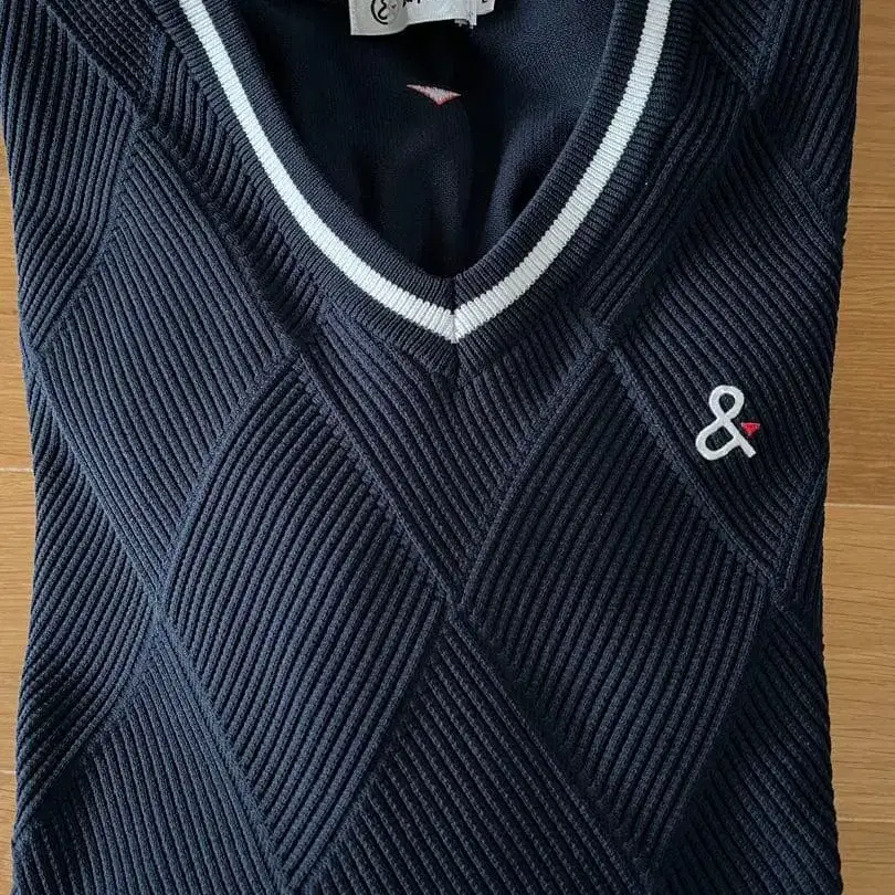 and per se 네이비 V넥 스웨터 다이아몬드 패턴