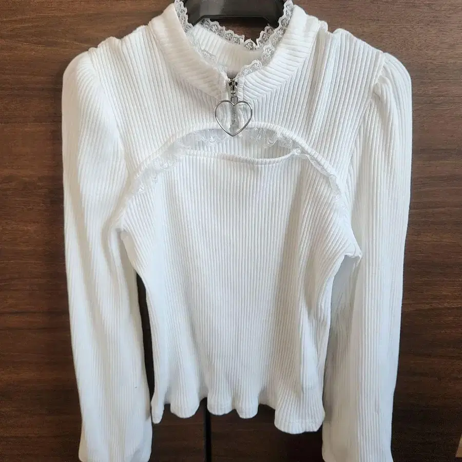 하트 ZIP 골지 상의 화이트 양산형 지뢰계