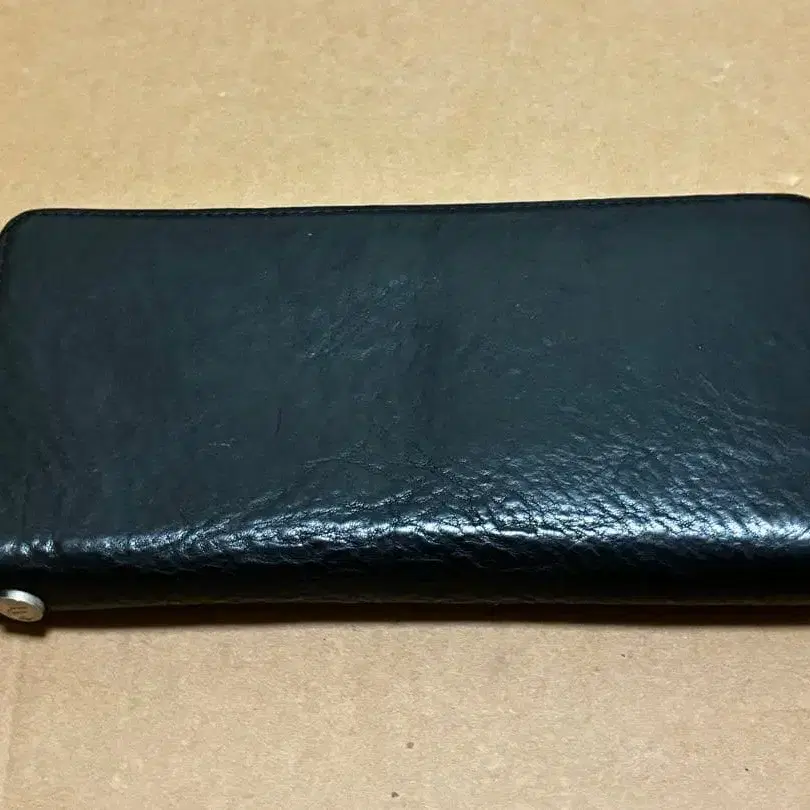 고품질 가죽 소재의 블랙 장지갑, 메탈 지퍼 포함.
