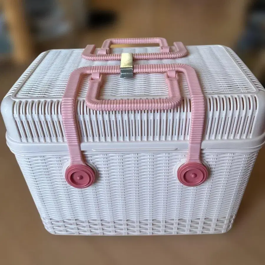 피크닉 바스켓으로, 잡화나 소품 수납에도 사용할 수 있다고 생각합니다. 한 번도 사용하지 않고 장기간 자택 보관했습니다. 미세한 흠집과 얼룩이 있지만 아직 사용할 수 있다고 생각합니다. 상태를 이해하시는 분만 검토 부탁드립니다. 이중 핸들과 금속 클립이 달린 컴팩트한 피크닉 바스켓. - 색상: 화이트, 핑크 - 소재: 플라스틱 - 특징: 이중 핸들, 금속 클립 포함 - 디자인: 뜨개질 디자인 - 사이즈는 사진으로 확인해 주세요. 방문해 주셔서 감사합니다.
