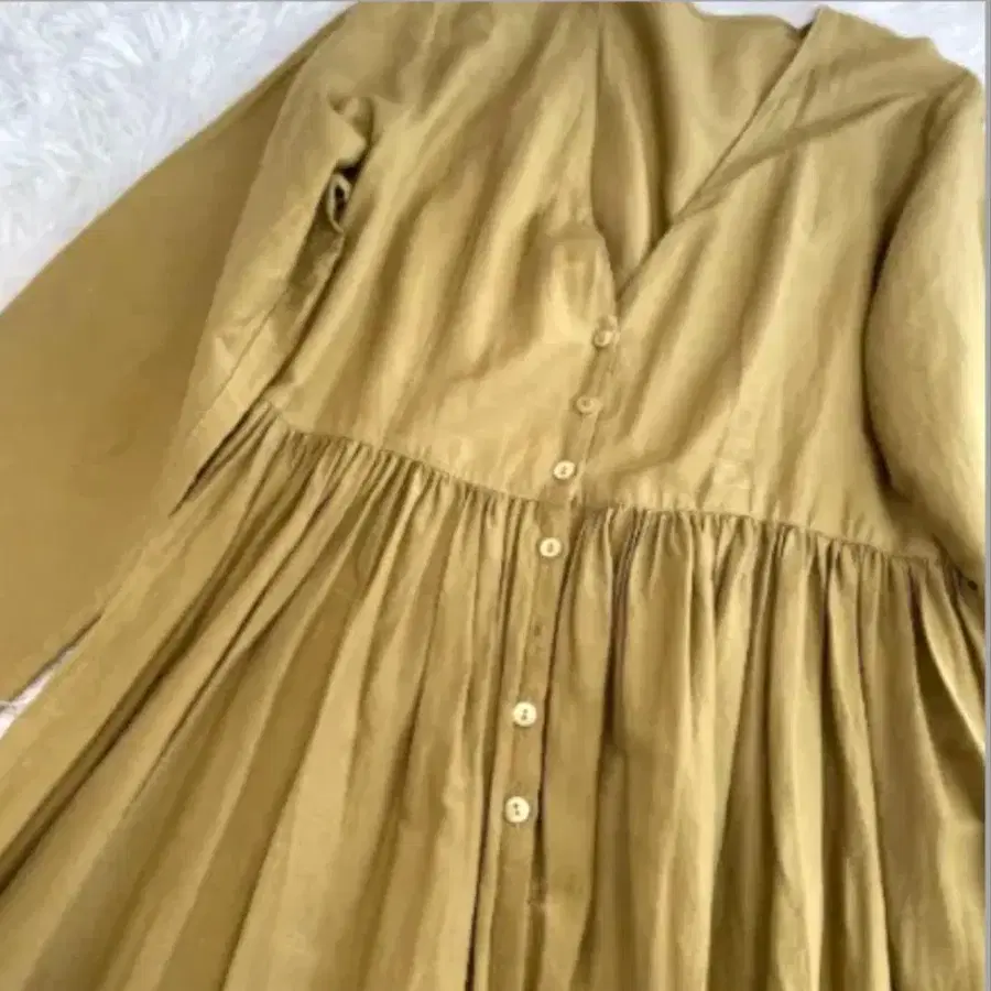 [ yuni ] 유니 코튼 실크 혼방 긴팔 개더 셔츠 원피스 프리
