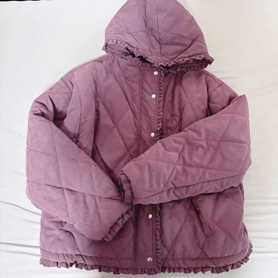 메리제니 프릴 퀼팅 후드 자켓 퍼플 아우터 다운