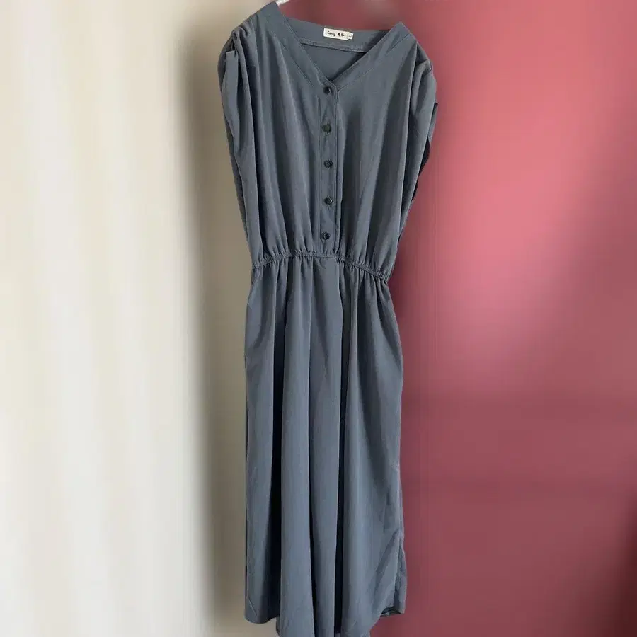 슬리브리스 버튼 롱 원피스 그레이