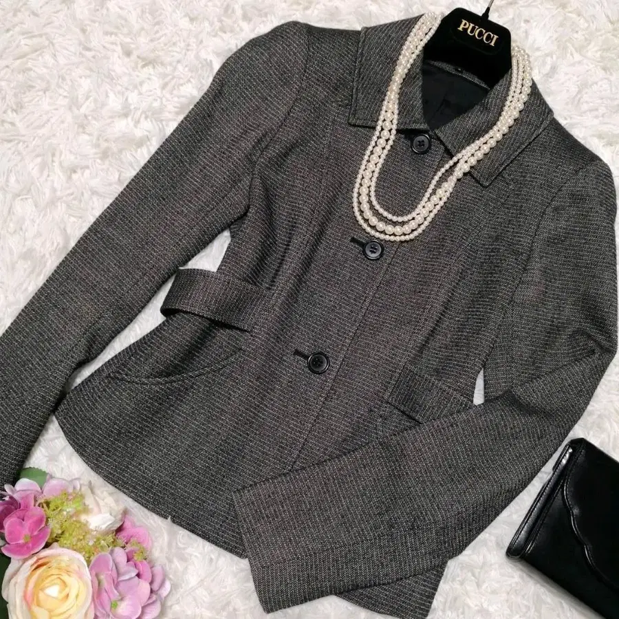 새상품급 M 띠어리 울 혼방 트위드 자켓 그레이 일본제 theory