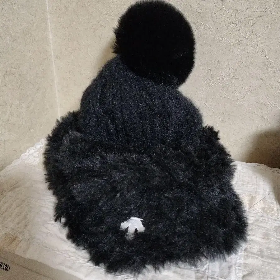 데상트 골프 블랙 폼폼 니트 모자