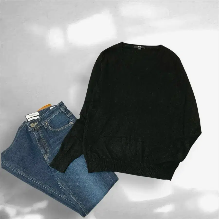 유니클로 캐시미어 100% 니트 스웨터 V넥 블랙 L 긴팔