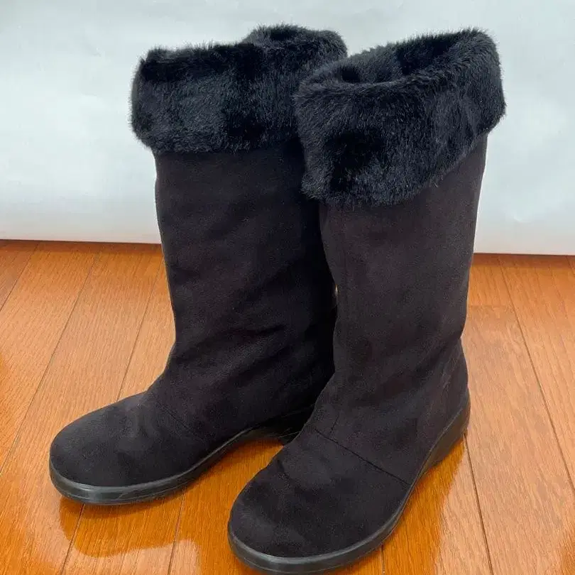 자동 번역되었어요. 원문보기고어텍스 사용한 방수 스웨이드 소재의 퍼付き 롱 부츠, 블랙 컬러로 스타일리시.