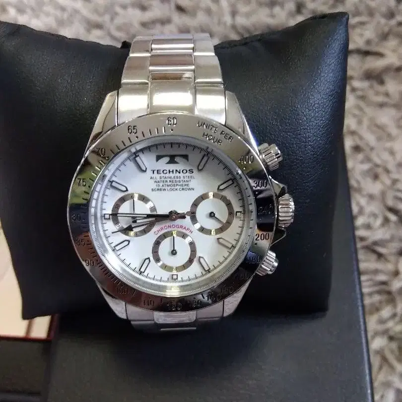 실버 색상의 스테인리스 스틸 소재 크로노그래프 손목시계, 부속품 완비. 한 번도 사용하지 않았습니다. - 브랜드: TECHNOS TSM401SW입니다. - 모델: 크로노그래프 - 색상: 실버 - 소재: 스테인리스 스틸 - 부속품: 보증서, 사용설명서, 여분의 시계 부품 방문해 주셔서 감사합니다.
