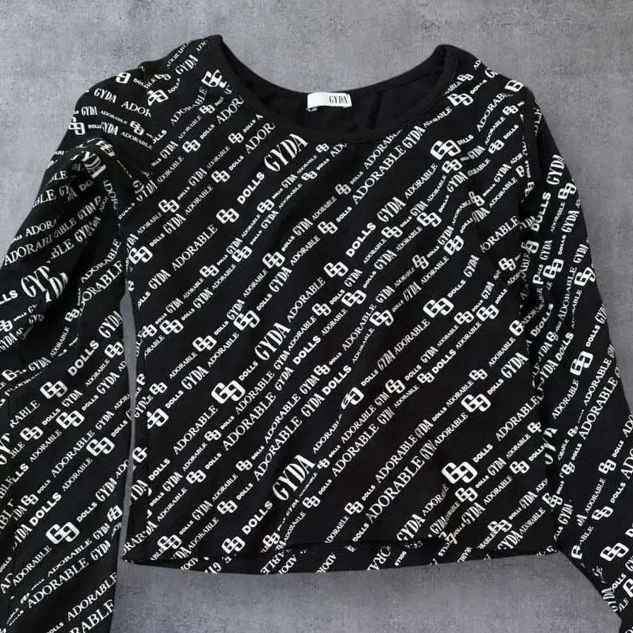 GYDA 로고 프린트 블랙 긴팔 상의
