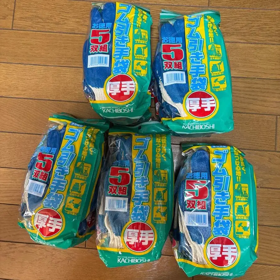 고무 코팅 장갑 5켤레 세트 파랑/베이지