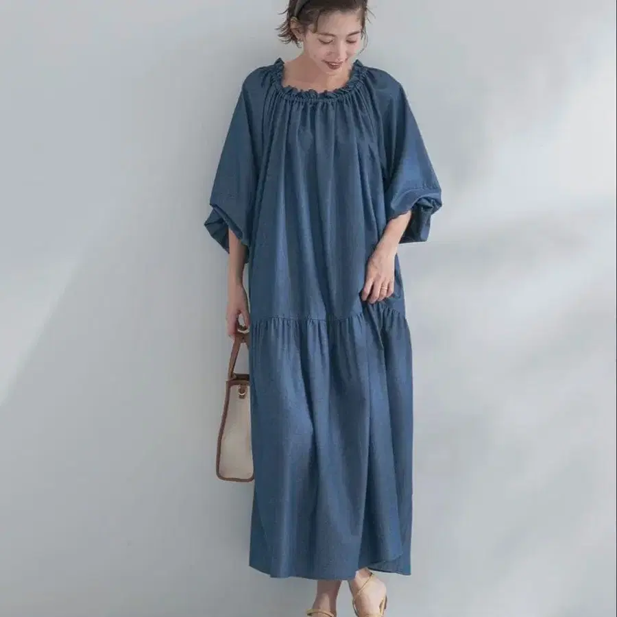 F by ROSSO 개더넥 티어드 데님 원피스 36