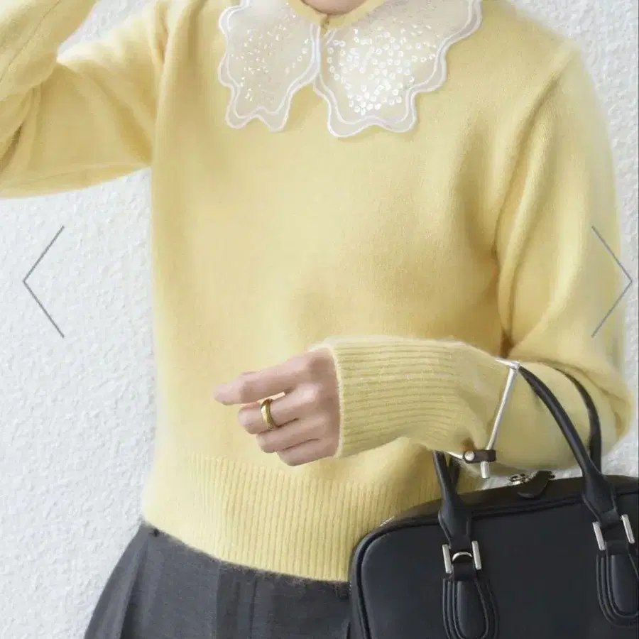 스팽글 자수가 놓인 옷깃 부착 니트 풀오버입니다.