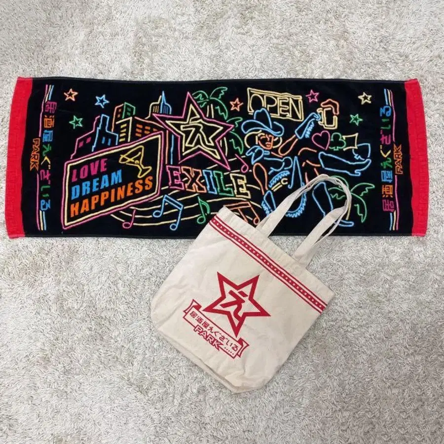 자동 번역되었어요. 원문보기[ 이자카야 EXILE ] 공식 굿즈, 페이스 타월과 토트백 세트입니다.