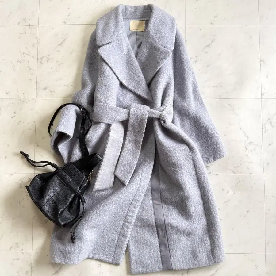 새상품급 개럴개런트 허리 마크 울 모헤어 혼방 샤기 테일러드 코트