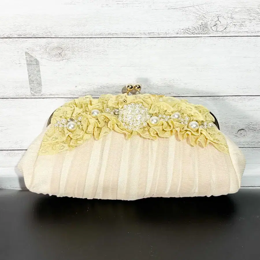 진주 장식 레이스 클러치백 가마구치 체인 포함 파티용