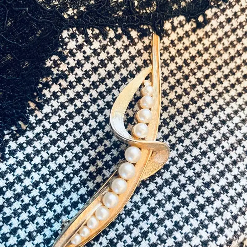 빈티지 Trifari 트리파리 골드 모조 진주 브로치