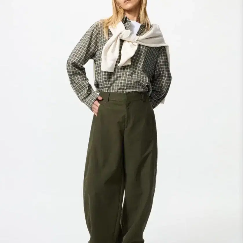 유니클로 저지 배럴 레그 팬츠 올리브 M 사이즈