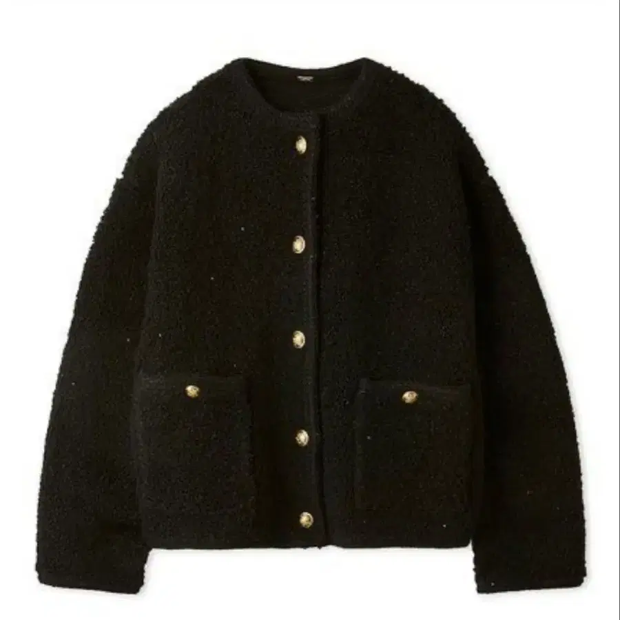 Mila Owen 금장 버튼 노카라 컴팩트 라메 니트 자켓