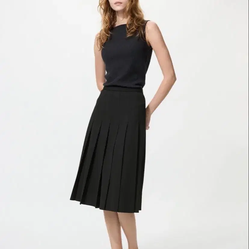 UNIQLO 와이드 플리츠 미디 스커트 M 블랙