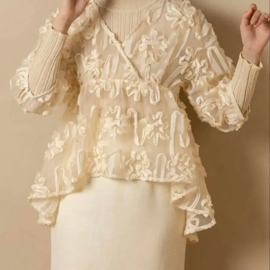 euw 완판템 플라워 시어 블라우스