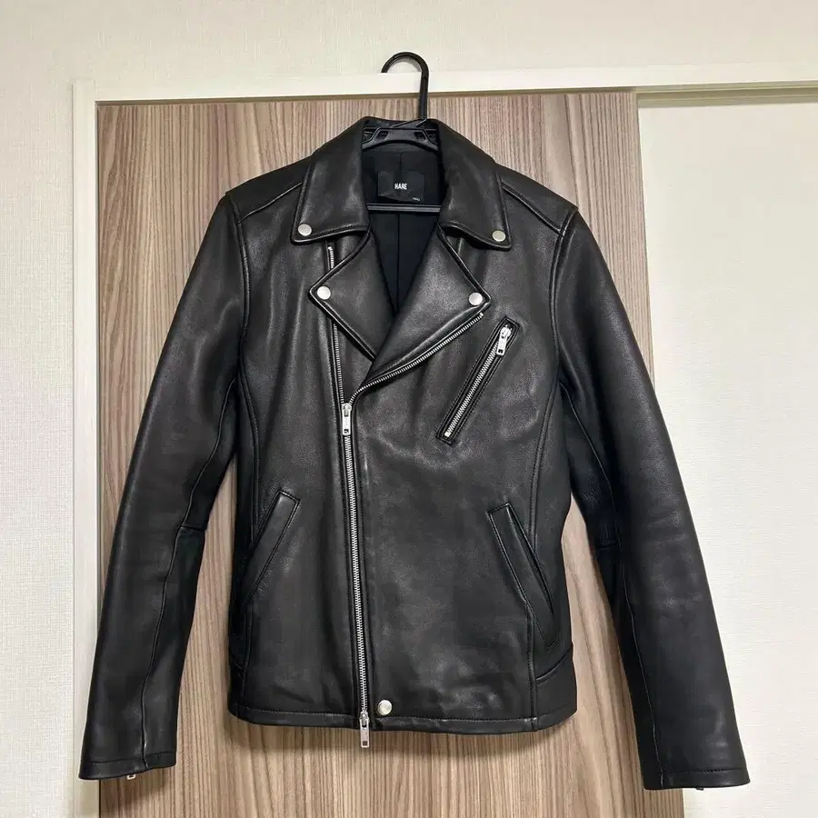 HARE 블랙 가죽(양가죽) 라이더 자켓
