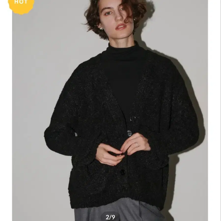 OHGA 블랙 니트 가디건 긴팔