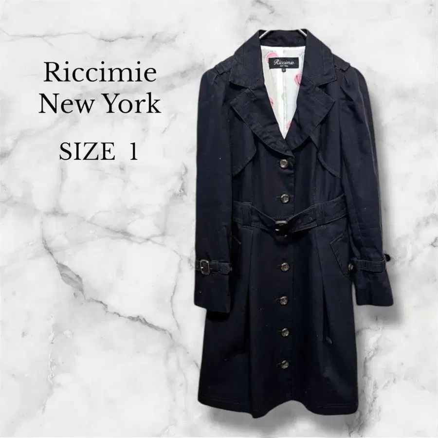 새상품급 리치미 뉴욕 트렌치코트 봄코트 마카롱 패턴 블랙